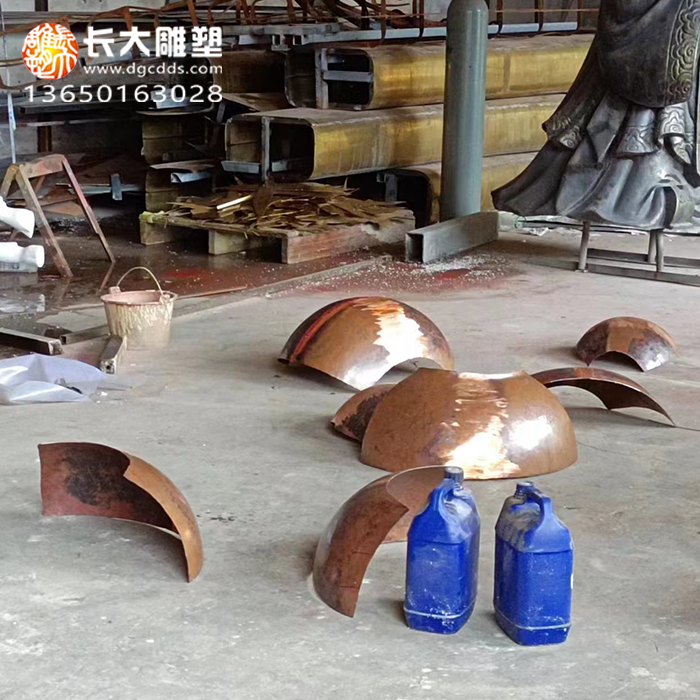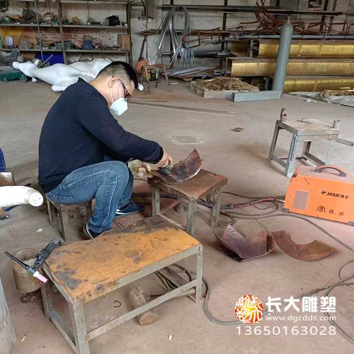 葫芦锻铜雕塑拼装焊接中,表面作旧效果