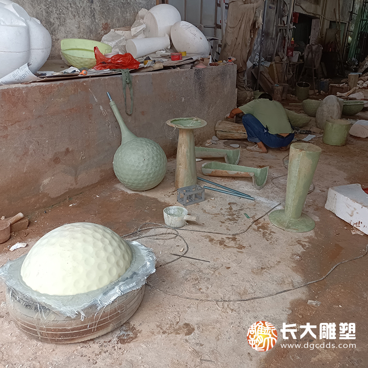 玻璃钢高尔夫球制作中,尺寸:81厘米高,材质:玻璃钢喷漆