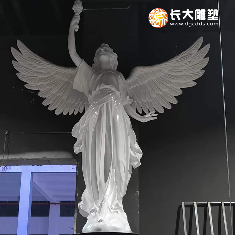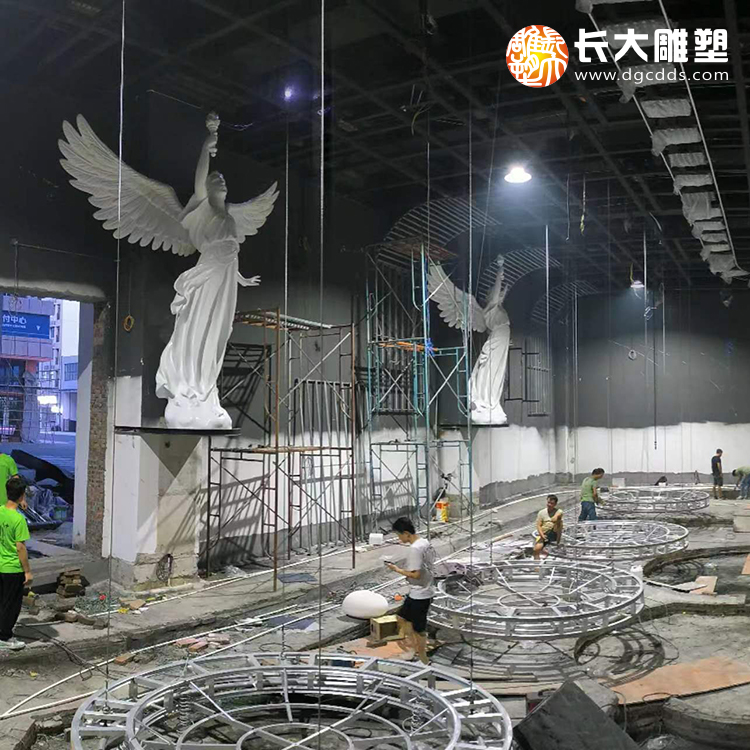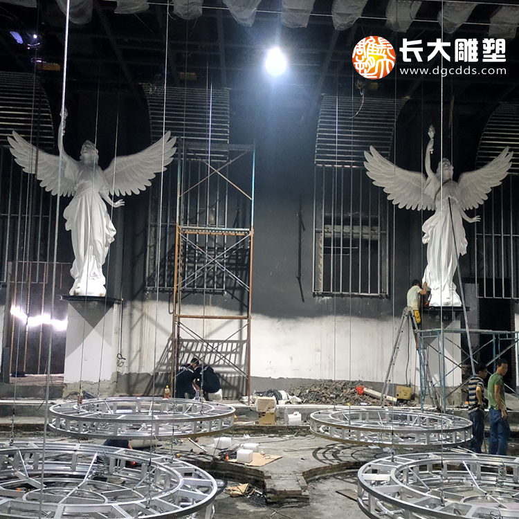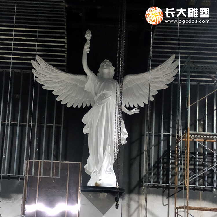 玻璃钢天使装饰雕塑安装完成 尺寸:4米高,材质:玻璃钢喷漆